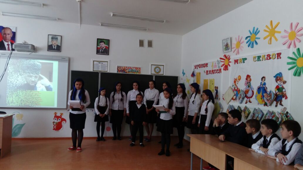 В школе прошли мероприятия, приуроченные ко Дню памяти и скорби народов ЧР. Во всех классах прошли тематические часы и беседы. На общешкольной линейке, которая прошла 7 Мая выступила, учитель истории и обществознания Умархажиева З.З., которая рассказала о нашем Первом Президенте А.Кадырове, о его подвигах. Так же прошло общешкольное мероприятие: «Герой нашего времени!». На мероприятии присутствовали учащиеся 1-11 классов, учителя и гости с РОО.